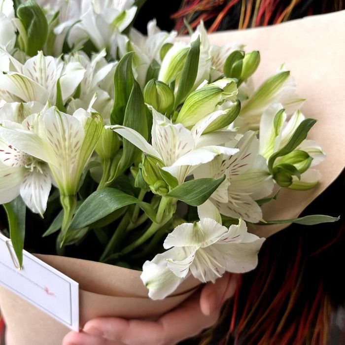 Альстромерия белая – 7 шт.Дизайнерская упаковка – 1 шт.