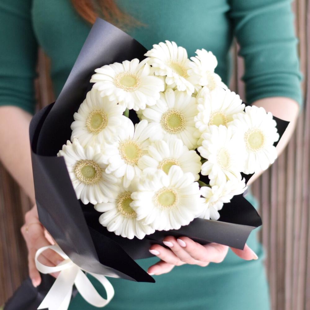 Букет из 15 белых мини гербер в упаковке “Рикки Мартин”
