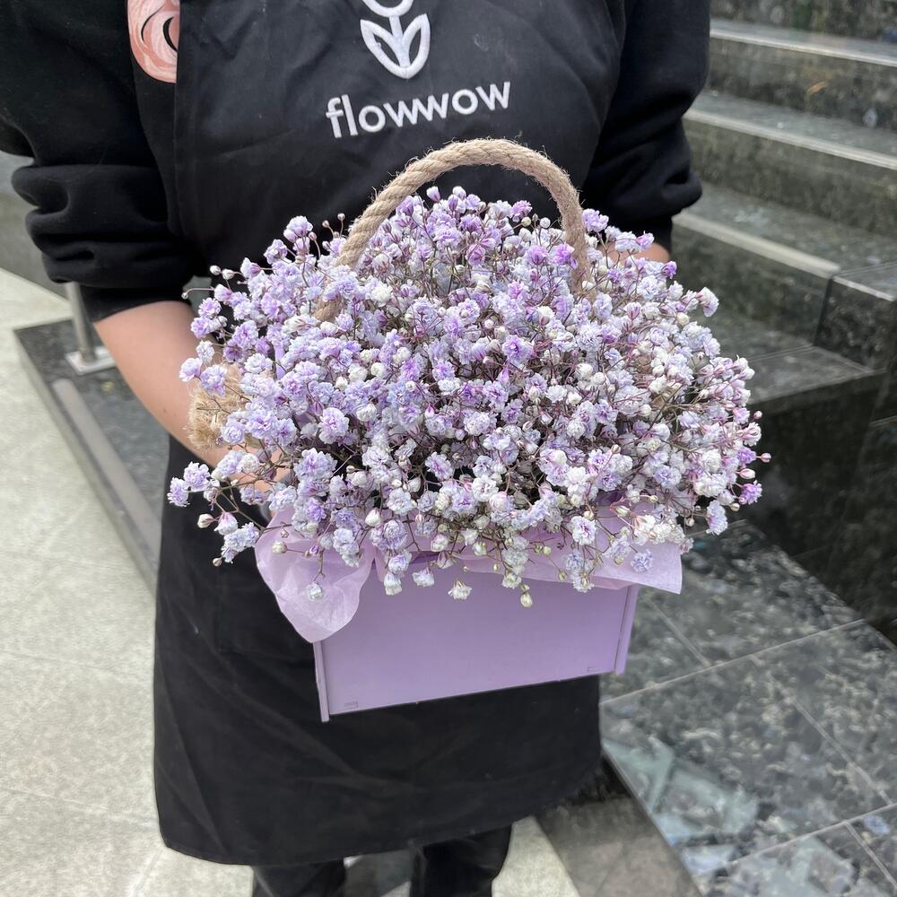 Гипсофила – 3 шт.Тишью – 1 шт.Ящик деревянный – 1 шт.