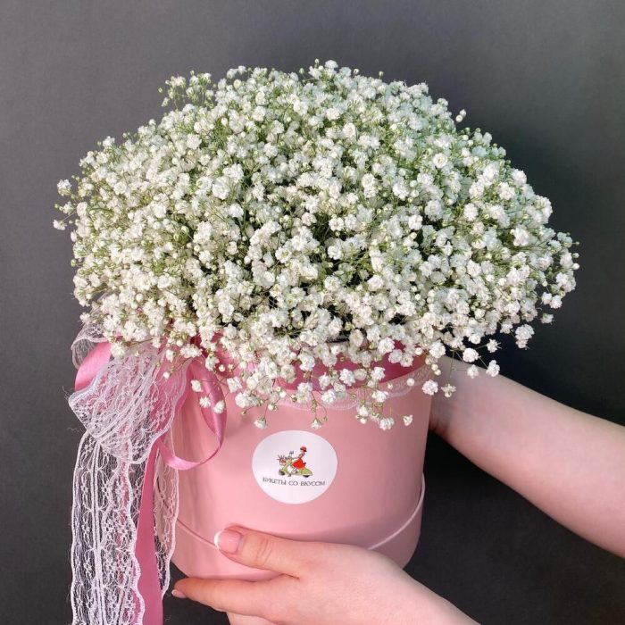 Гипсофила – 5 шт.Коробка шляпная – 1 шт.Кружево натуральное – 1 шт.