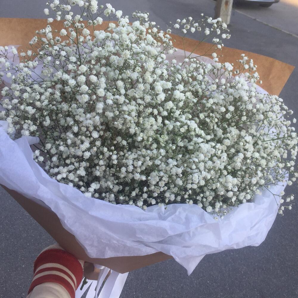 Гипсофила – 9 шт.Тишью – 4 шт.Крафт – 2 шт.Лента атласная – 2 шт.