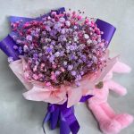 Подарочный набор – Букетик гипсофилы (размеры: 25 см высота, 20 см ширина) с мягкой игрушкой Lapkin. Доставляется в крафтовом пакете (высота 25 см, ширина 22 см, глубина 12 см).