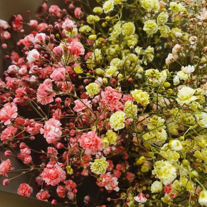 Гипсофила – 7 шт.Упаковка дизайнерская – 1 шт.Лента атласная – 2 шт.