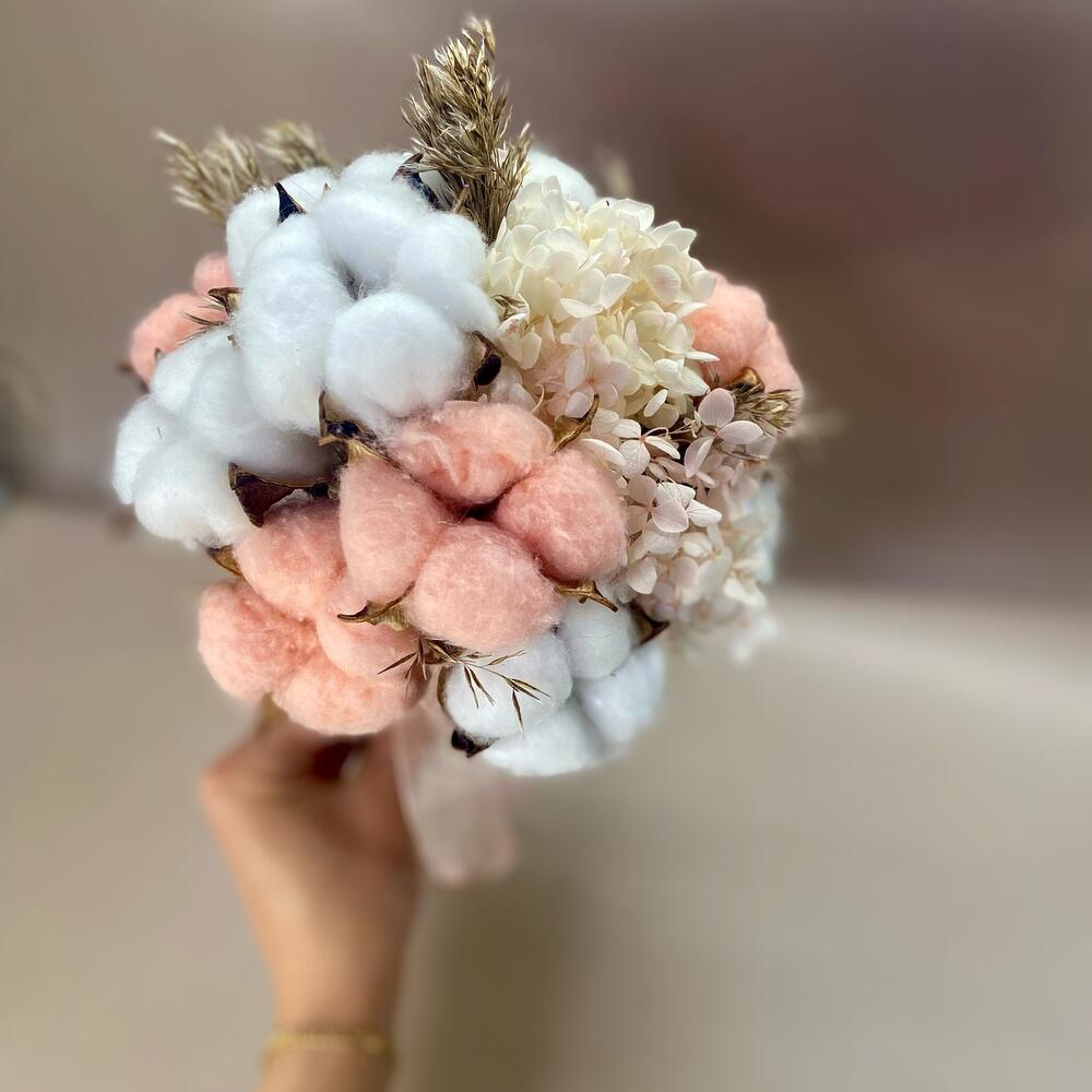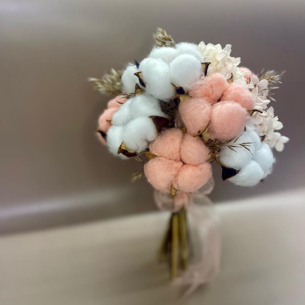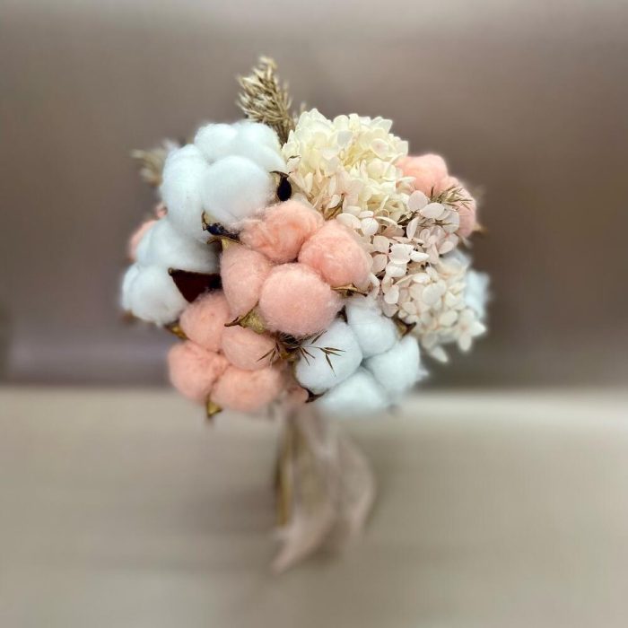 Букет из Хлопка и стабилизированной Гортензии