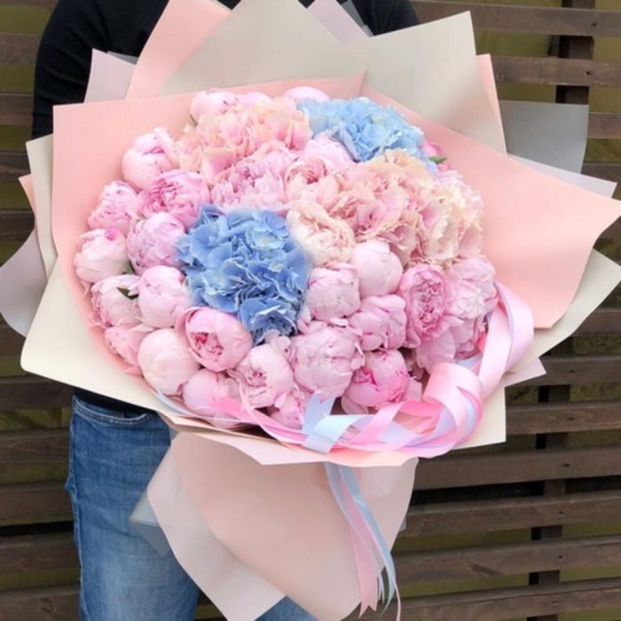 Альстромерии, Гортензии, Кустовые розы, Пионовидные розы, Розы