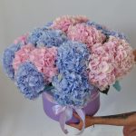 Гортензия – 21 шт.Лента атласная – 2 шт.Коробка шляпная – 1 шт.Оазис флористический – 6 шт.