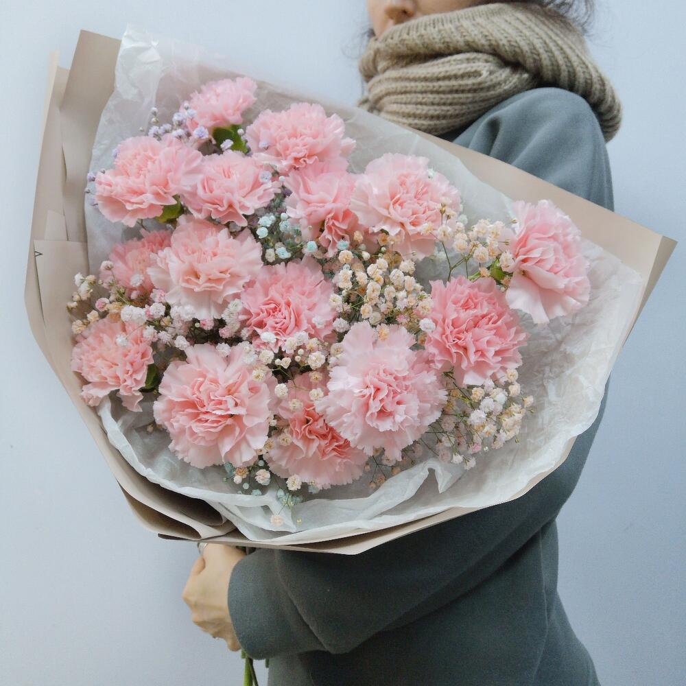 Букет “Большое Нежное Облако” из диантусов с гипсофилой