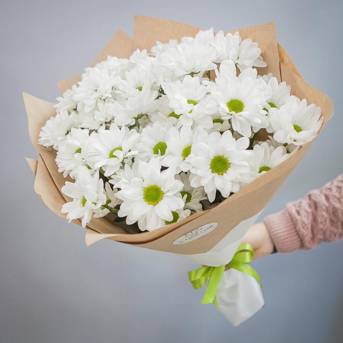 Букет из 7 кустовых хризантем в крафте