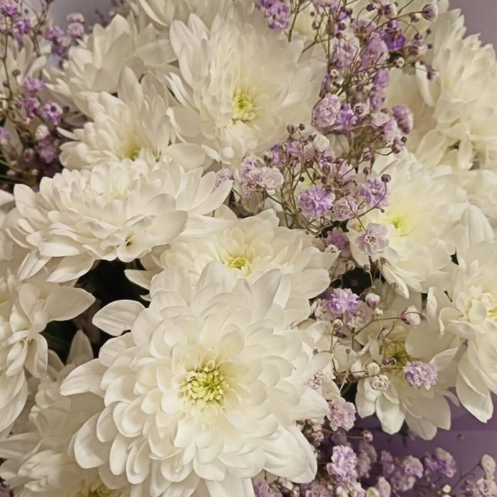 Гипсофила – 2 шт.Хризантема кустовая – 7 шт.Упаковка дизайнерская – 1 шт.