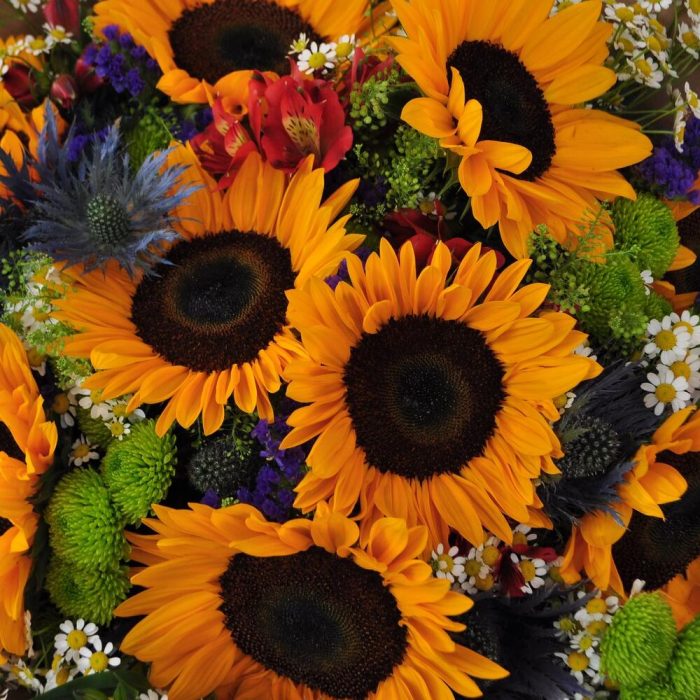 Категории: Альстромерии, Подсолнухи, Хризантемы