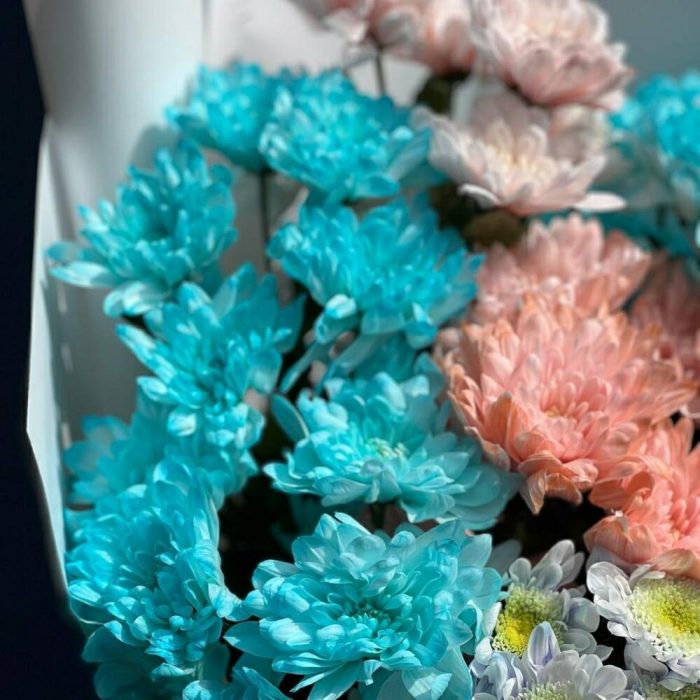 Шикарный яркий букет из радужной хризантемы станет отличным подарком для ваших родных и близких и долго будет радовать своими красками