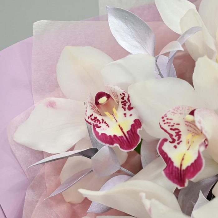 Орхидея Цимбидиум – 9 шт.Рускус – 10 шт.Упаковка дизайнерская – 1 шт.