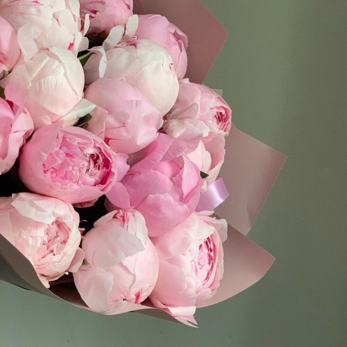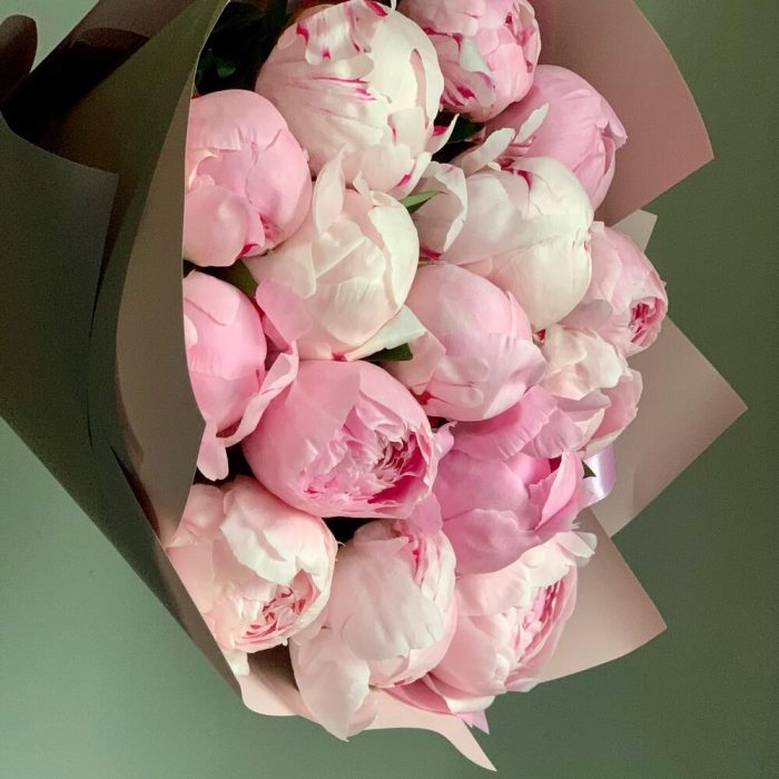 Букет из 15 розовых пионов в дизайнерской упаковке "Принцесса Маргарита"