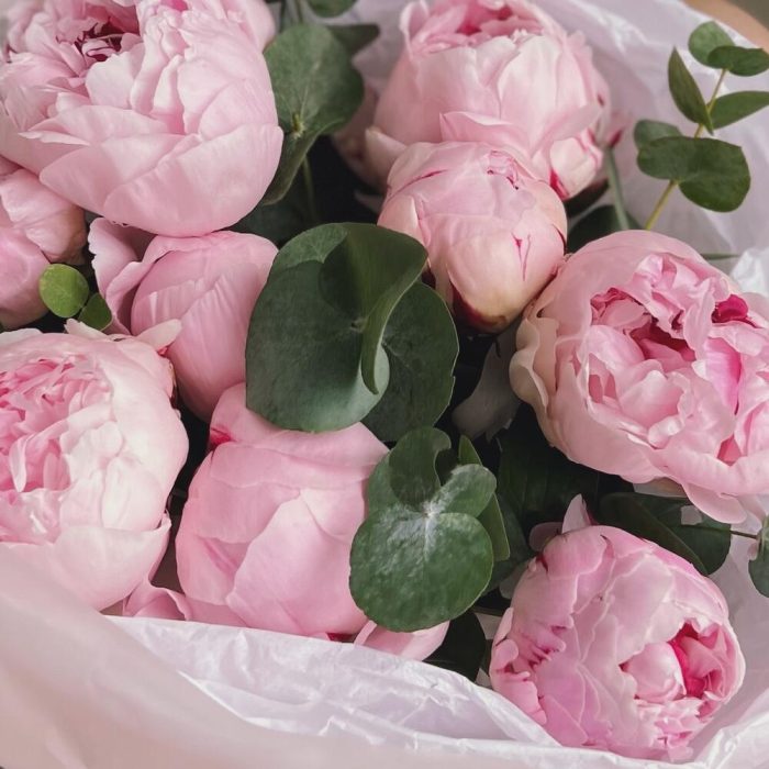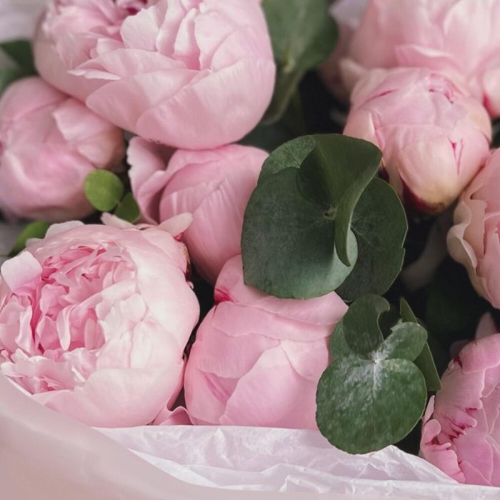 Букет из 9 пионов с эвкалиптом “PINK PLOMBIR”