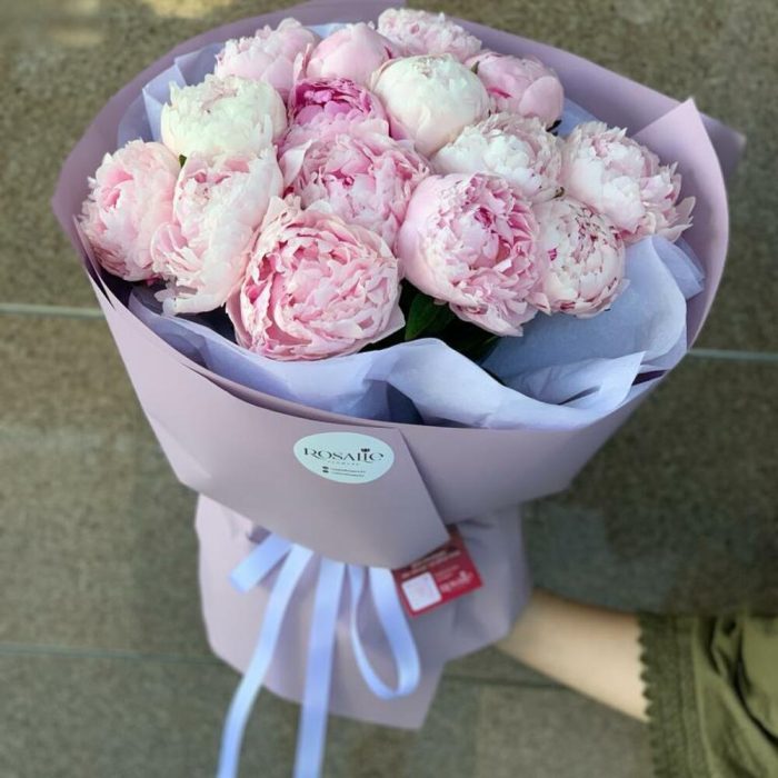 “Пиономания”: 13 розовых пионов в упаковке