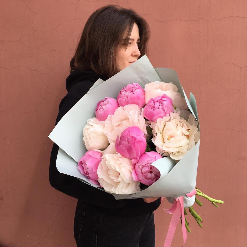 Букет Розовые сладости из 15 веток пионовидных роз