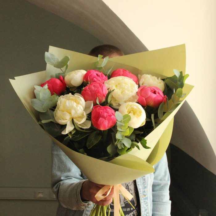 Пион – 11 шт.Эвкалипт – 5 шт.Упаковка – 1 шт.