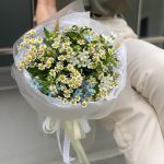 Букет Бохо из оксипеталума и танацетума
