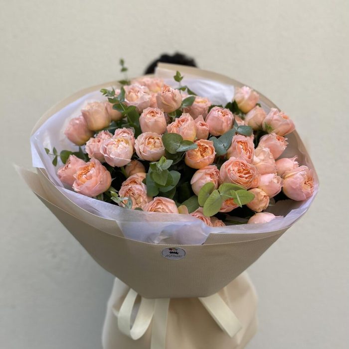 Эвкалипт – 2 шт. пионовидные спрей роза – 15 шт.