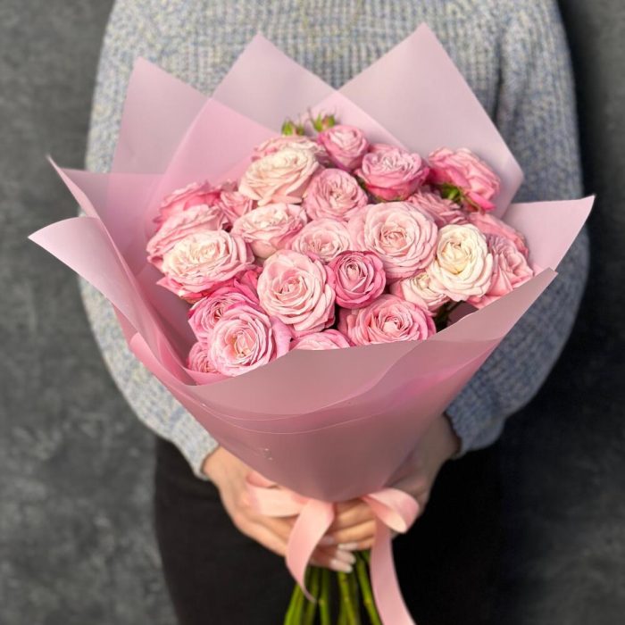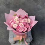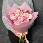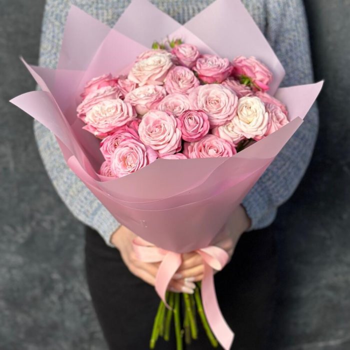 Лента атласная – 1 шт.Стильная упаковка – 1 шт.роза кустовая пионовидная леди бомбастик – 11 шт.