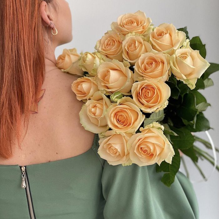Букет из 15 высоких персиковых роз