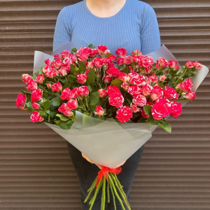 Лента – 2 шт.Пленка матовая – 3 шт.фаервокс роза кустовая – 15 шт.