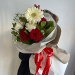 Букет из роз и гербер в дизайнерском оформлении