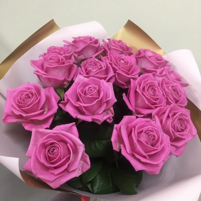 Лента атласная – 3 шт.Пленка дизайнерская – 5 шт.сортовая роза аква – 15 шт.