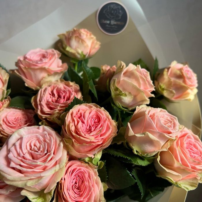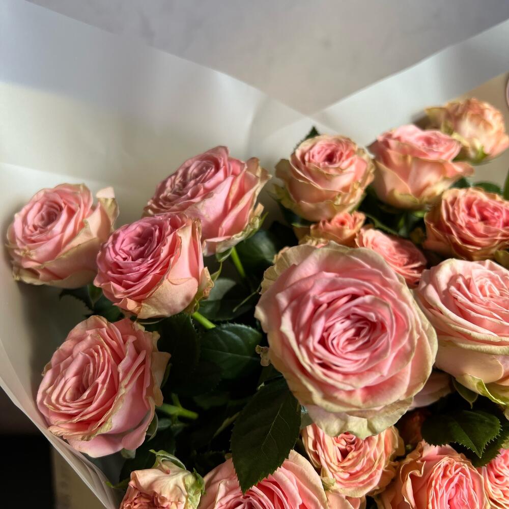 Кустовая роза – 5 шт.декоративная упаковка – 1 шт.Атласная лента – 1 шт.