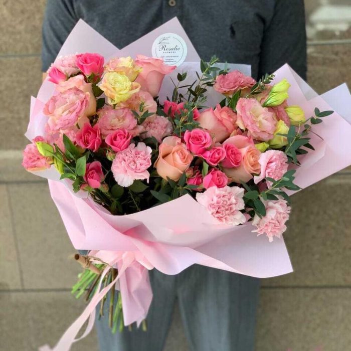 Альстромерии, Кустовые розы, Лизиантусы, Пионовидные розы, Розы, Ромашки