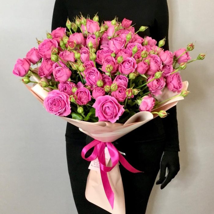Лента атласная – 1 шт.пленка перламутровая – 2 шт.пионовидная кустовая роза баблз – 15 шт.