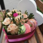 “Сладкое сердце ” – цветочная композиция с сладостями в коробке “Сердце”