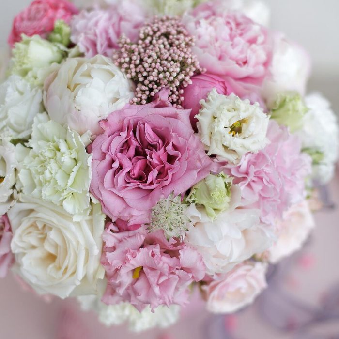 Гвоздики, Кустовые розы, Лизиантусы, Пионовидные розы, Розы