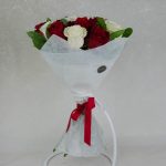 белая роза – 7 шт. Красная роза – 7 шт. Упаковка – 1 шт. Агапантус – 1 шт.