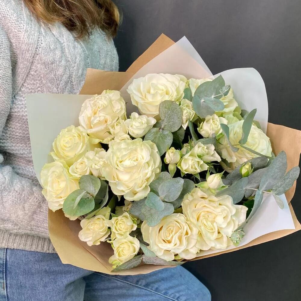Кустовые розы и эвкалипт