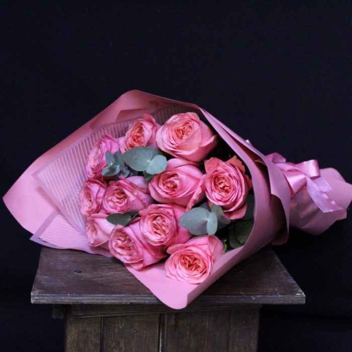 mono bouquet 68 из 11 роз сорта pink expression с эвкалиптом