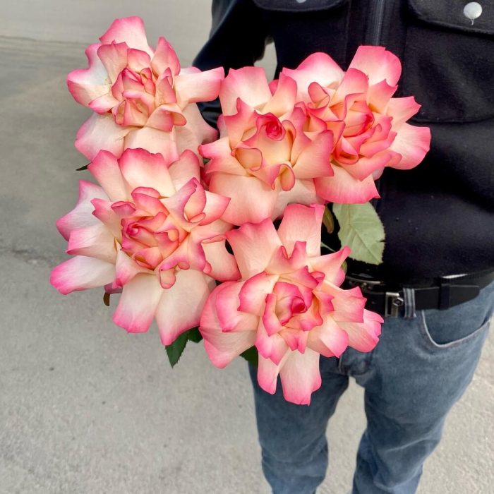 Роза французская – 5 шт.Лента атласная – 1 шт.