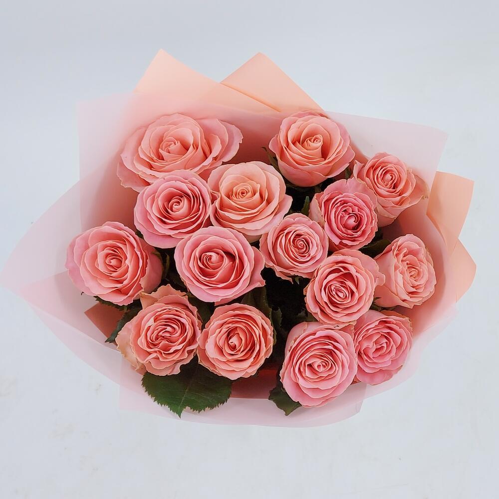 Нежнейшие розочки красивого розово-персикового оттенка в стильной упаковке в тон. Такой букет всегда уместен и подойдёт для любого повода: День Рождения, именины, годовщина свадьбы, рождение ребенка, 8 марта, День Святого Валентина, выпускной и т.д. Можно вручить маме, … Показать ещёсестре, подруге, коллеге, учителю, любимой.