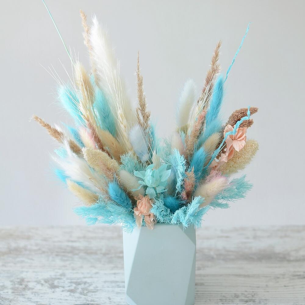 кашпо гипсовое – 1 шт.Оазис для сухоцветов – 1 шт.аспарагус стабилизированный пучок – 1 шт.камыш декоративный микс пучок – 1 шт.лагурус микс пучок – 1 шт.Сетария – 3 шт.пшеница выбеленная – 4 шт.Картамус – 3 шт.
