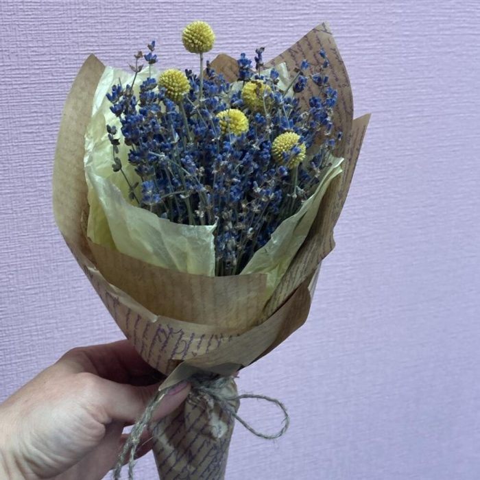 Лаванда (сухоцвет) – 30 шт.Краспедия желтая – 5 шт.Упаковка – 1 шт.
