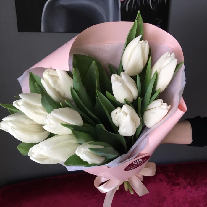 Букет из 11 белых гладких тюльпанов