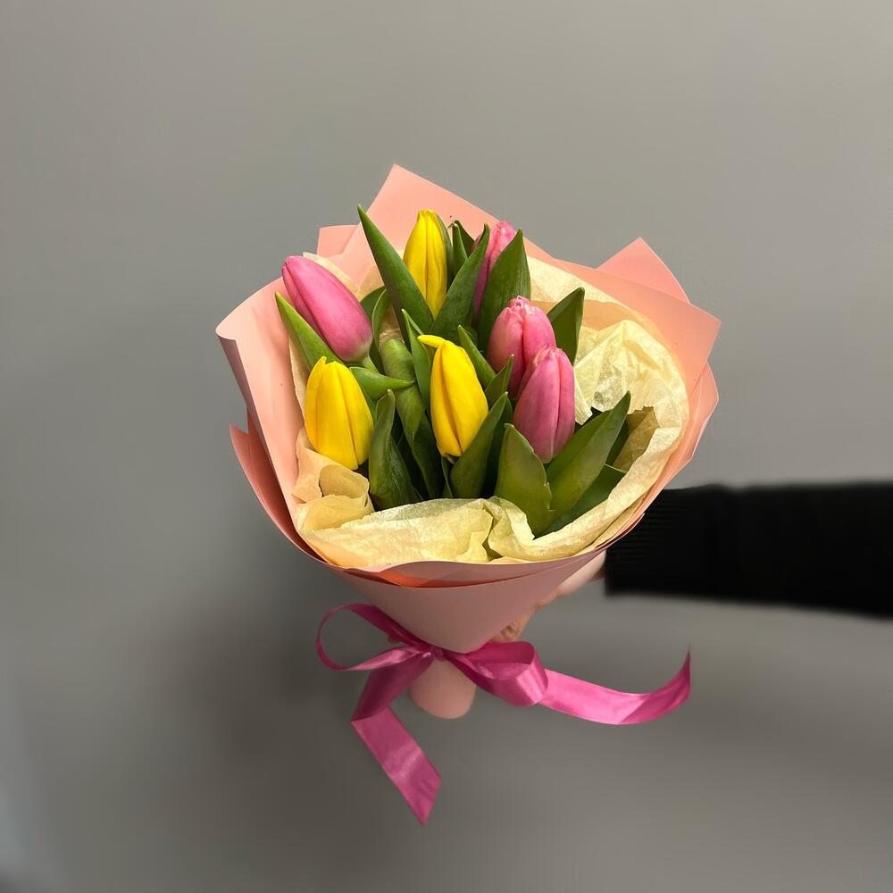 Тюльпан – 7 шт.Упаковка дизайнерская – 1 шт.Тишью – 1 шт.
