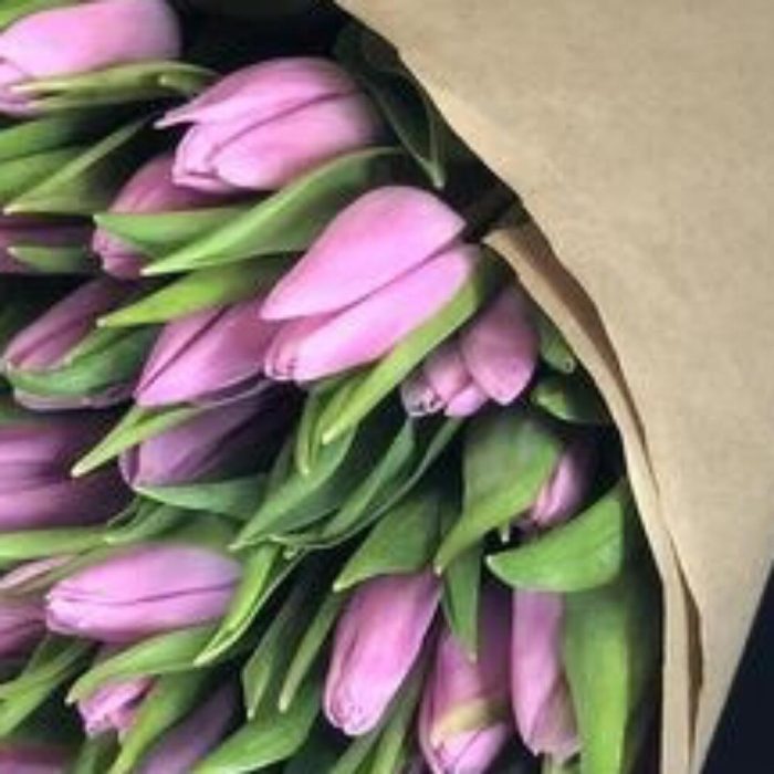 Сиреневые тюльпаны в крафте